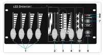 1: 4, odpowiednio dla kanału suwaki : czerwony, zielony, niebieski i biały (lub amber) do Wyjście sygnału DMX512;