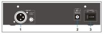 1: Złącze XLR z wyjścia sygnału DMX512 (Pin 1: Uziemienie, Pin 2: Dane -; Pin 3: dane +);